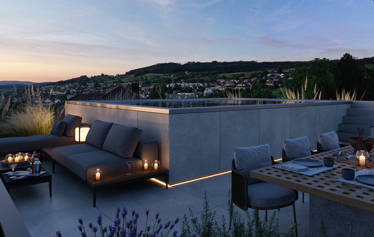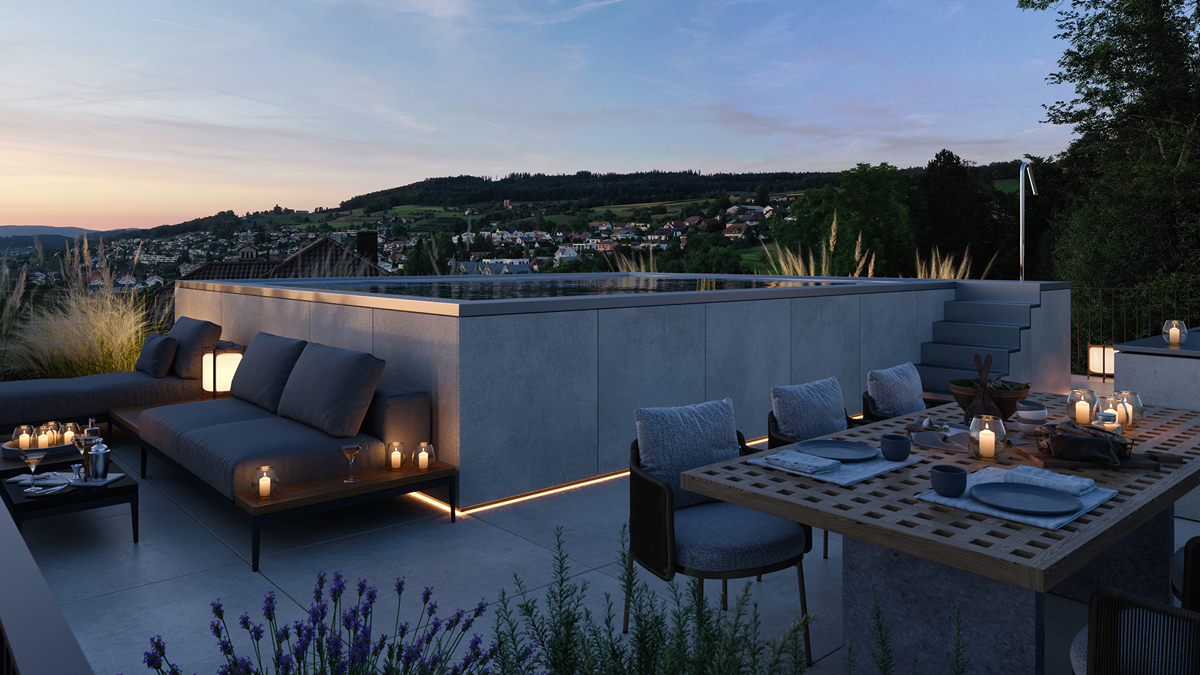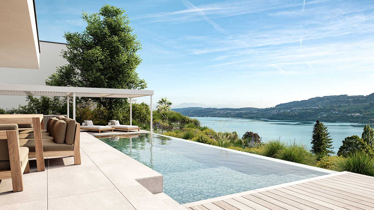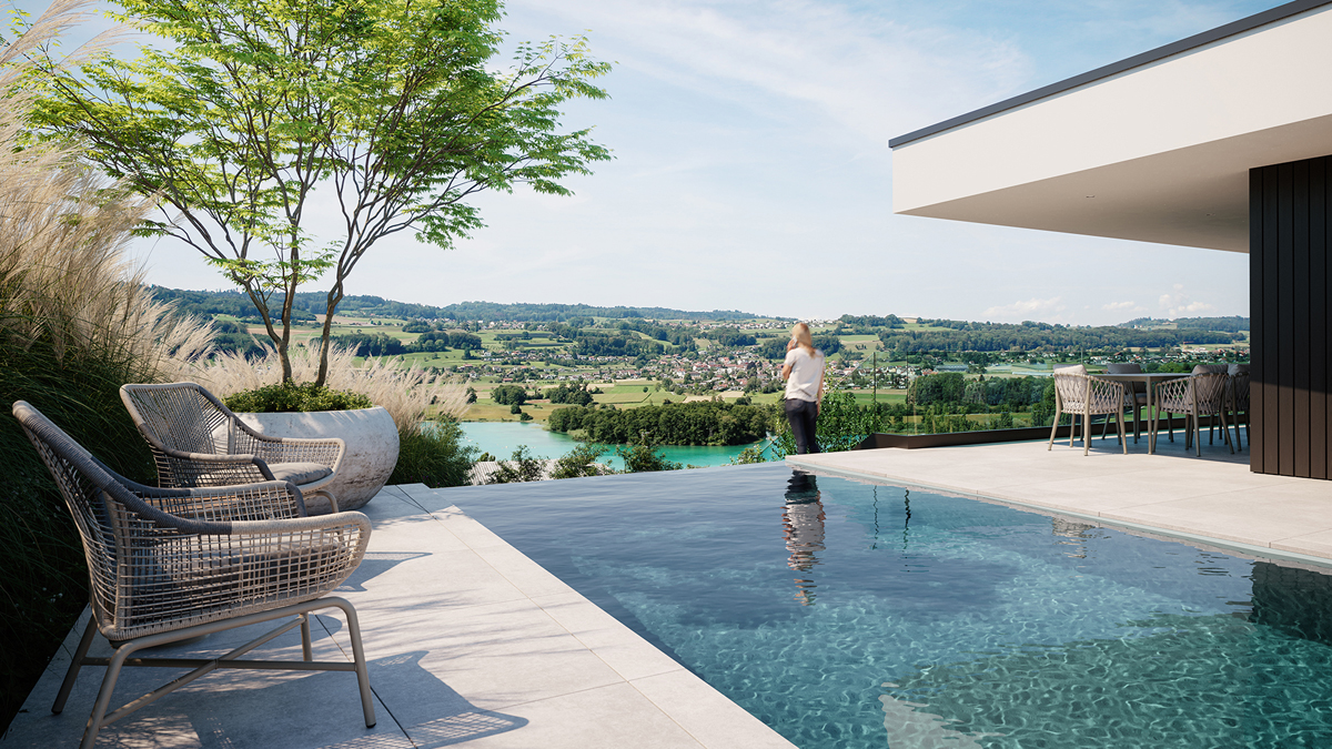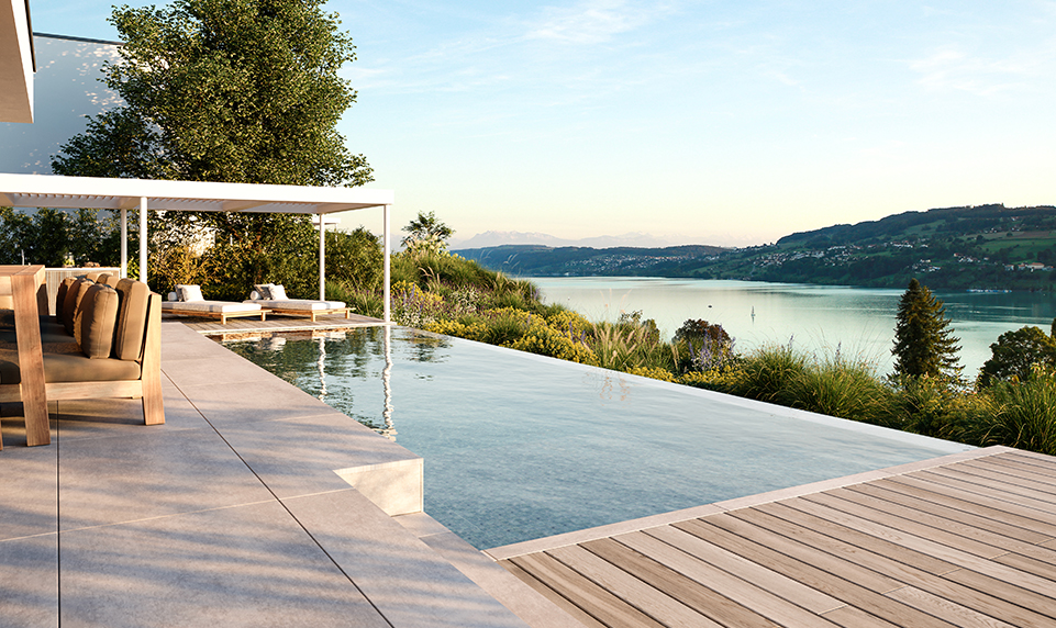 ...richten Sie Ihren Blick in die Weite, holen Sie diese zauberhafte Aussicht in Ihren Pool und lassen sie immer wieder in die Unendlichkeit abtropfen…
